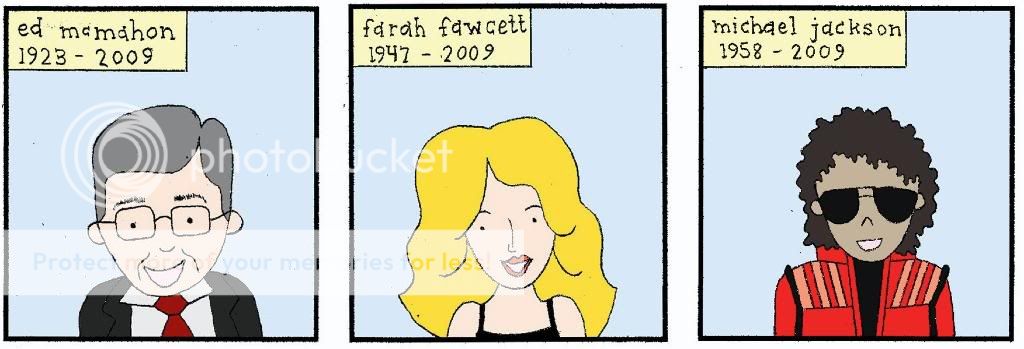 very good depiction of the 3 celebs.. especially the michael jackson..but i would've called it "Another Tragic Celebrity Death Batch"
